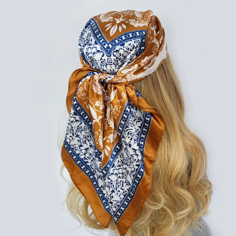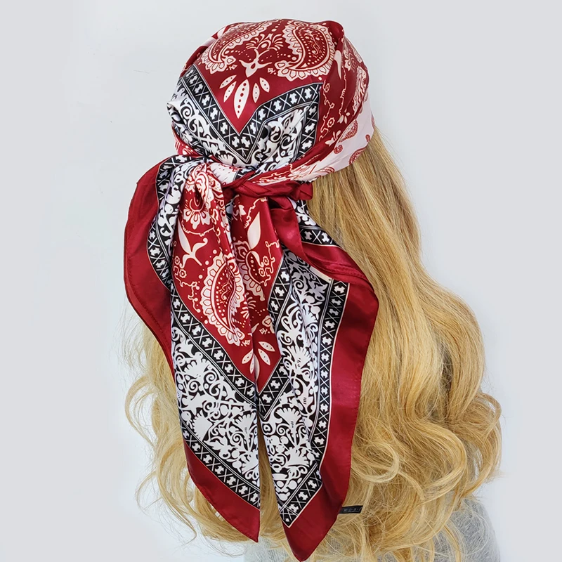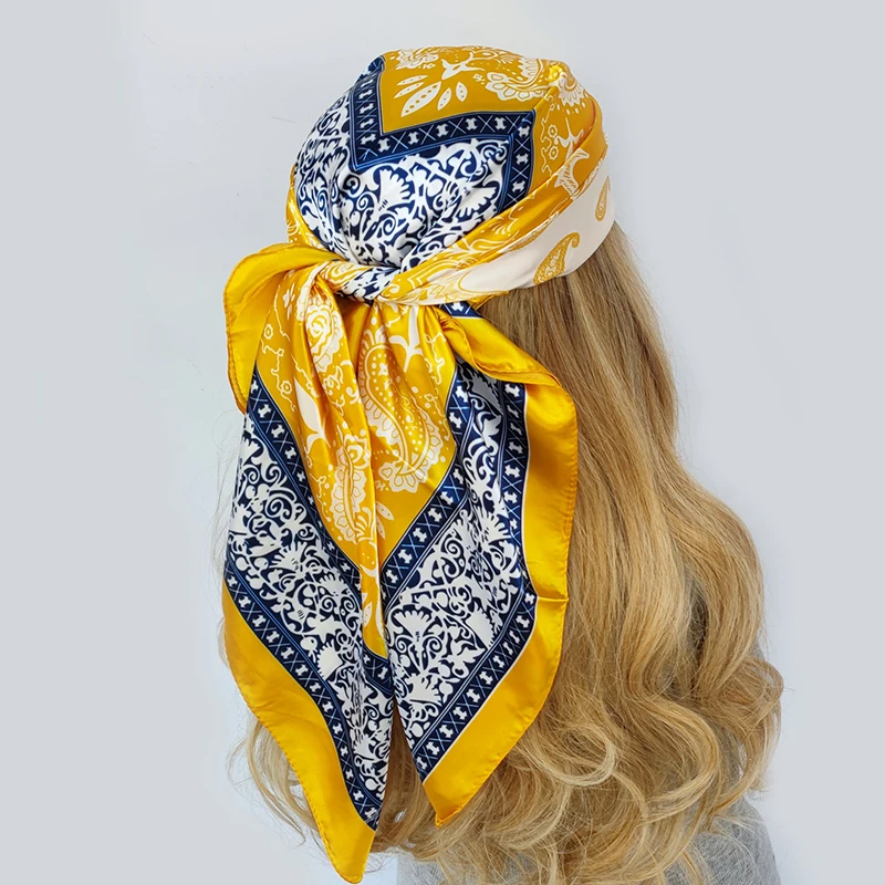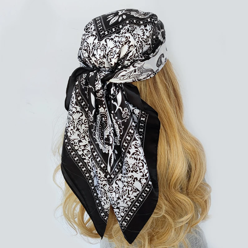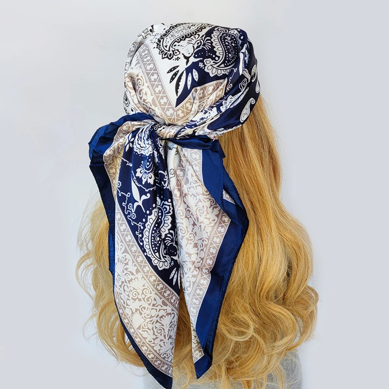 Fashion Square Silk Scarf Women Headband 90*90cm Print Neck Scarfs Office Hair Band Hand Kerchief Female Bandana Headwear