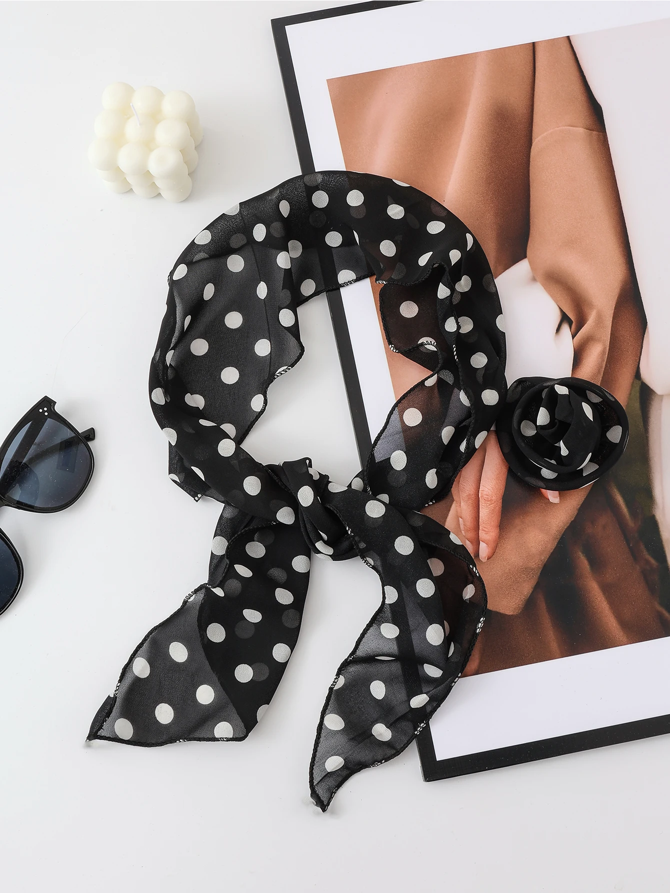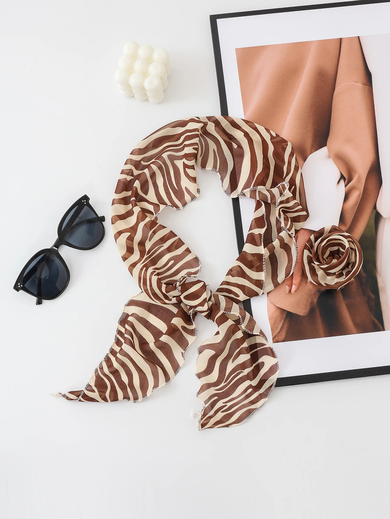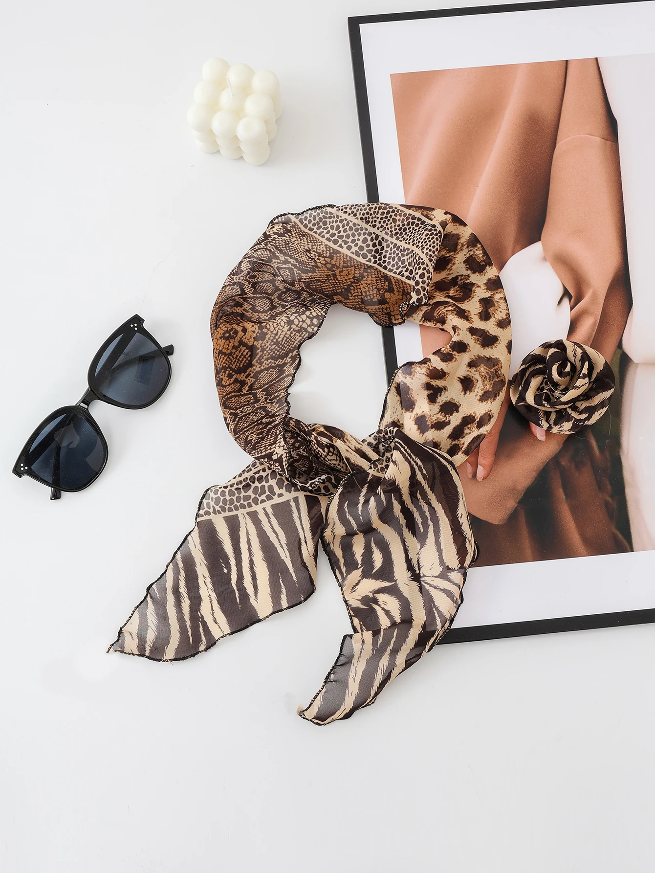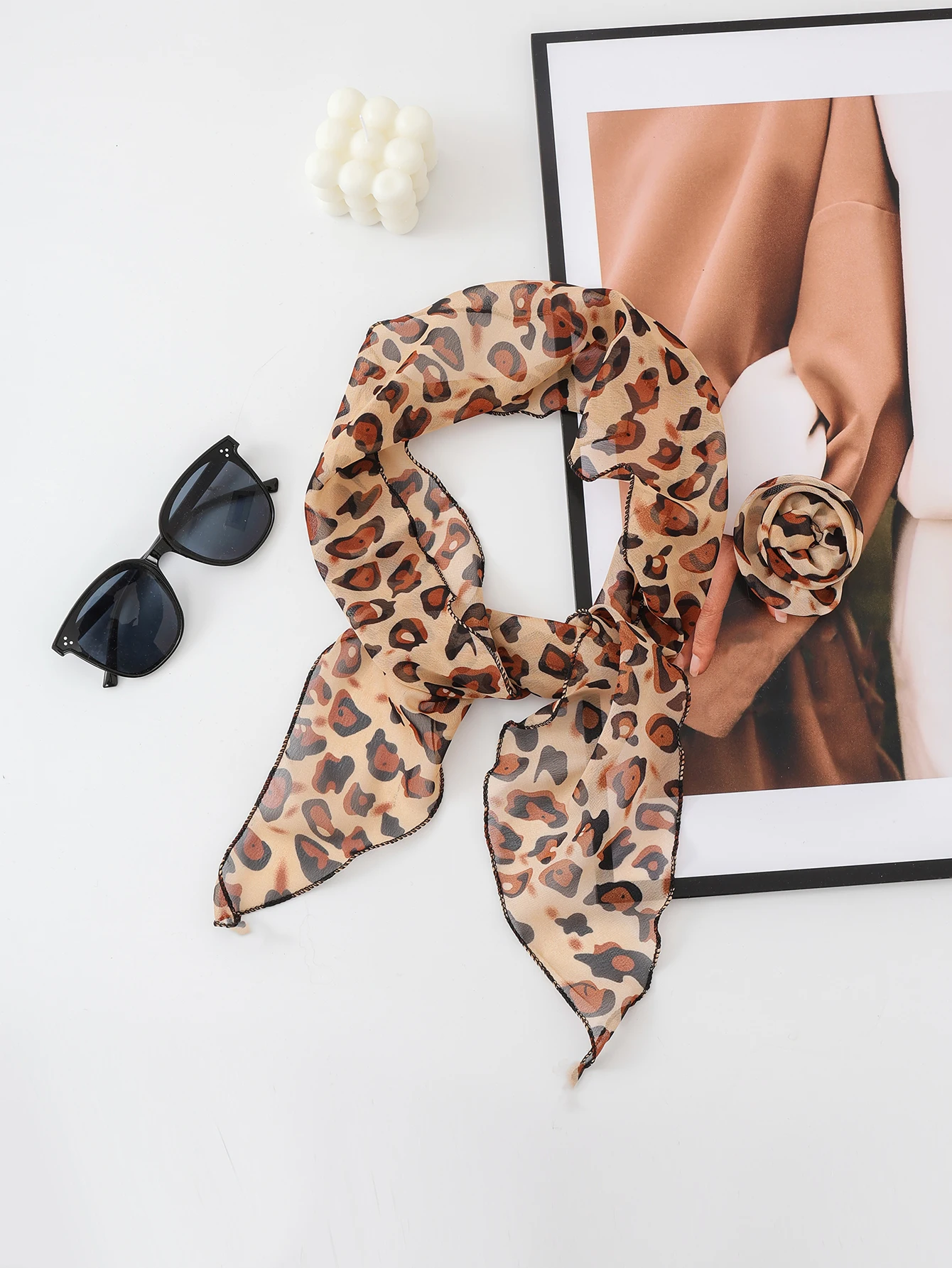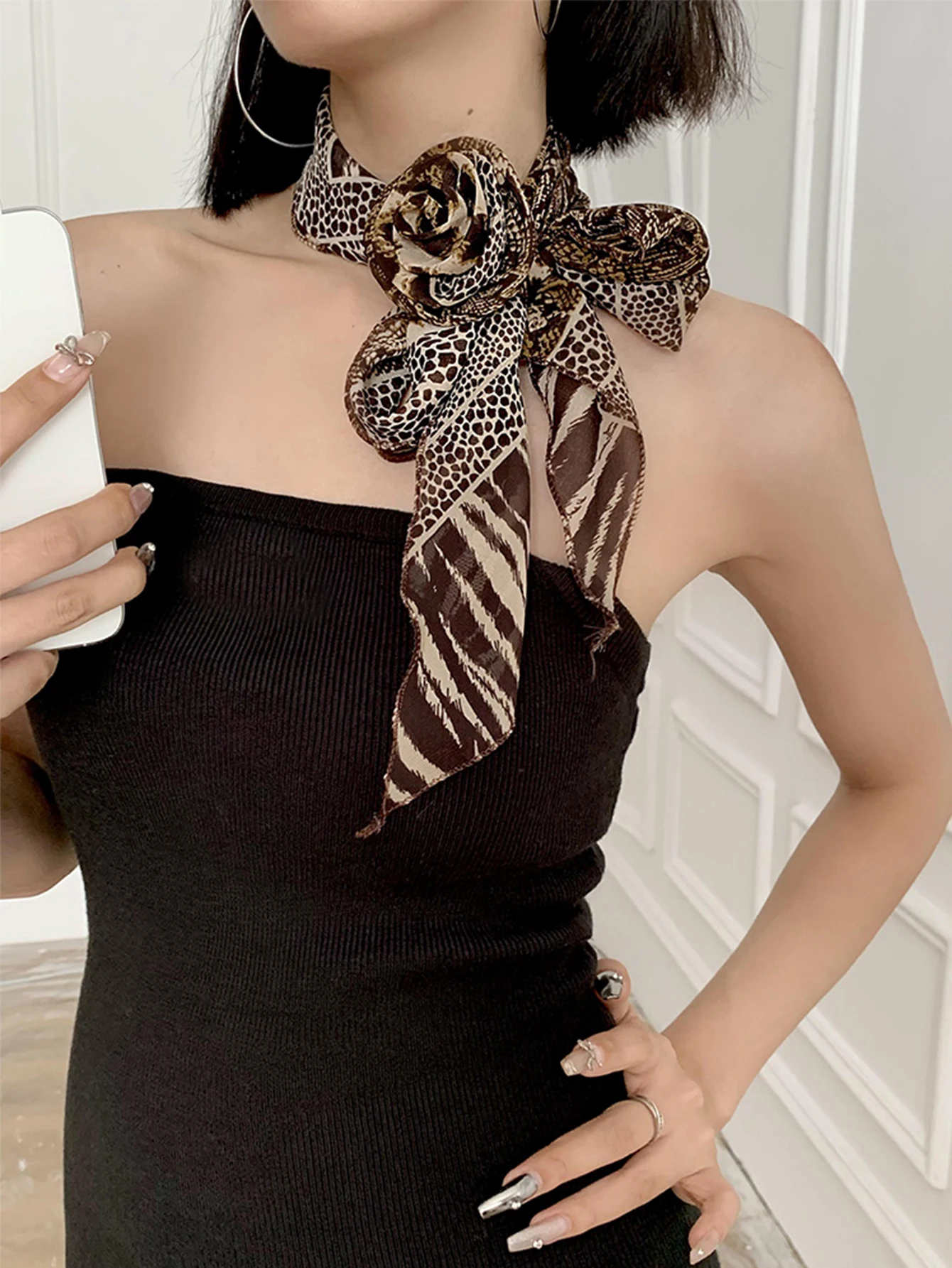 Three Dimensional Rose Chiffon Silk Scarf With Leopard Print Women's Scarf y2k Scarf Retro Angled Scarf Tied Headband